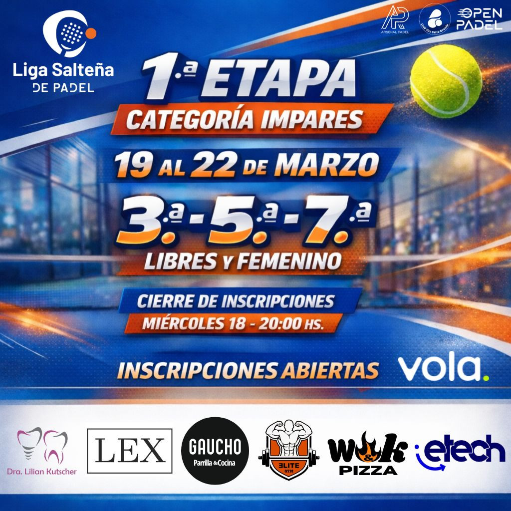 Etapa 1 Categorías Impares - Liga salteña de Pádel