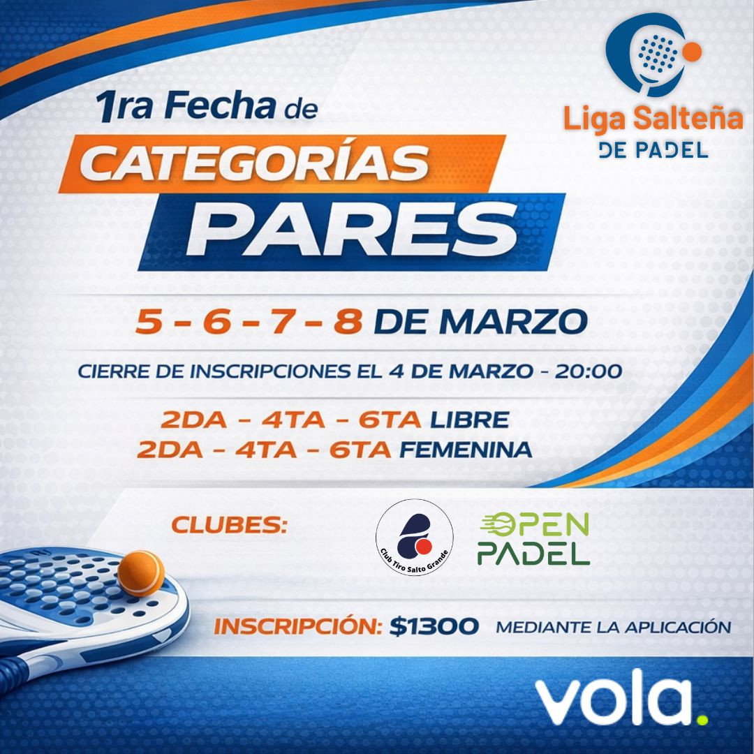 Primera Fecha Liga Salteña de Padel categorias Pares