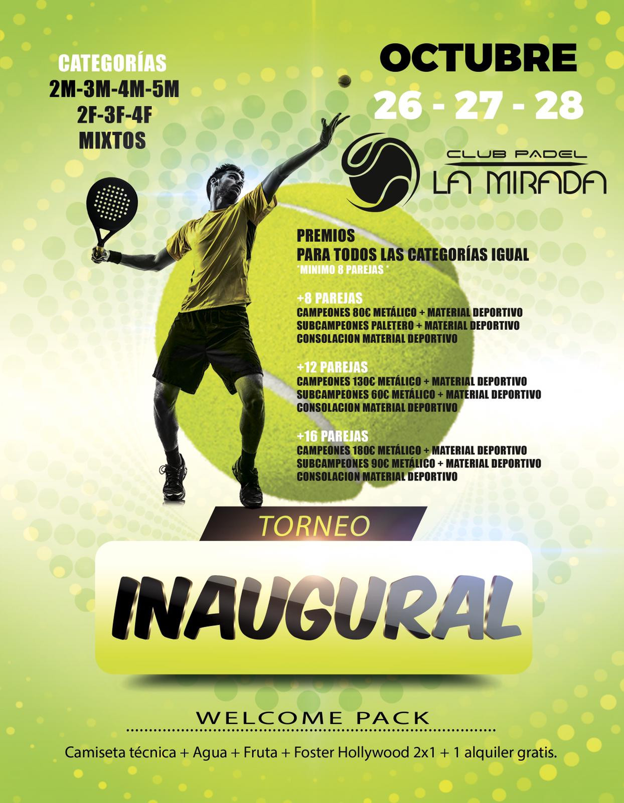 Torneo INAUGURAL. La Mirada Padel. Oct 26/27/28