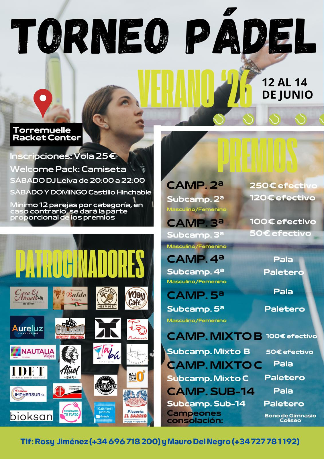 TORNEO VERANO 2026 TORREMUELLE RACKET CENTER (Queden 76 dies)