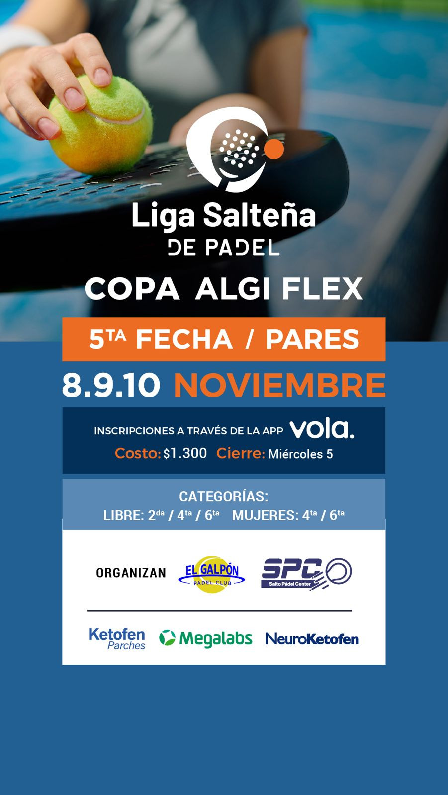 5ta fecha liga salteña de padel - Categorías Pares - Vola