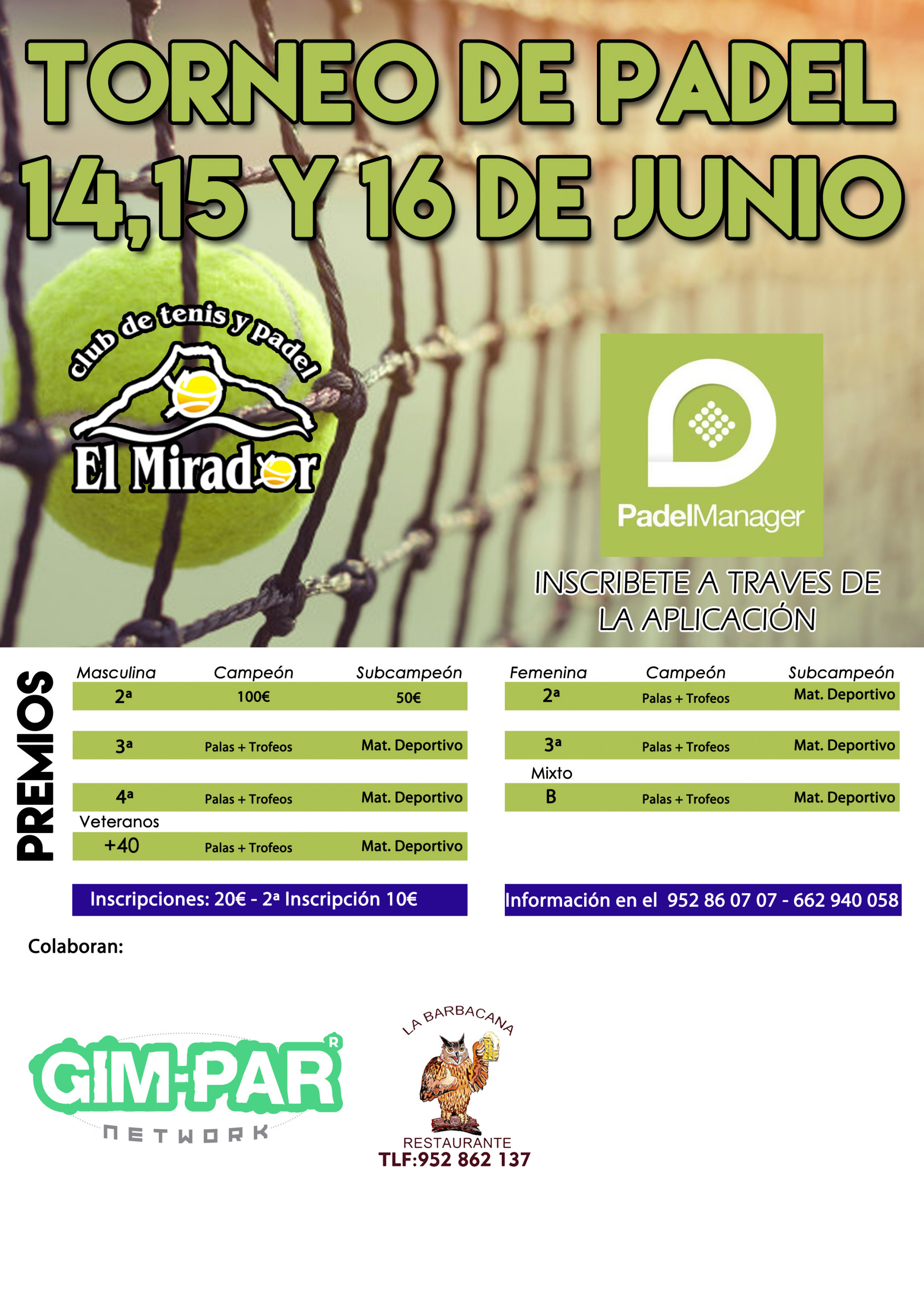 TORNEO DE PADEL 14, 15 Y 16 DE JUNIO