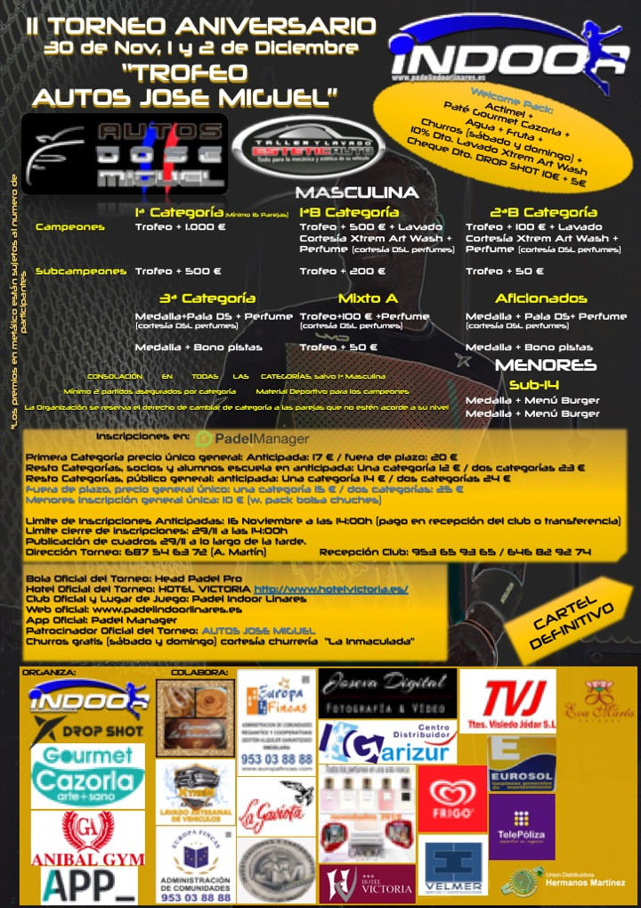 TORNEO II ANIVERSARIO PADEL INDOOR LINARES "Trofeo Autos Jose Miguel"